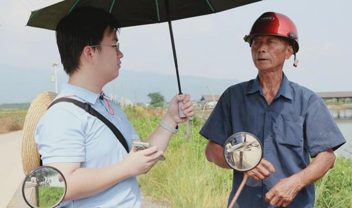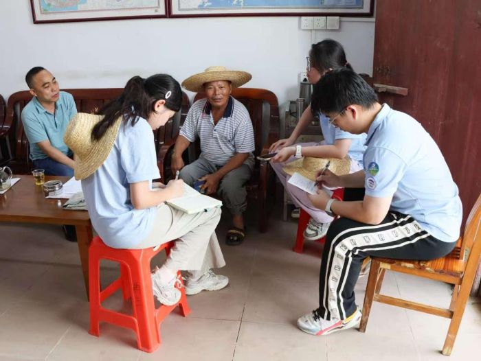 图为肇庆学院“芡”途似锦突击队队员采访当地种植户。黄茹灵供图