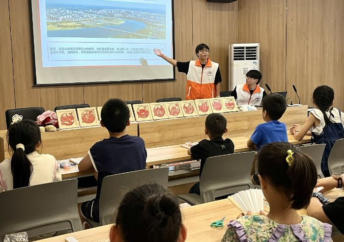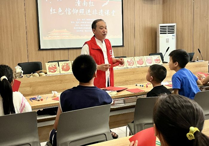 寻根潼南红,童心创非遗。在梓潼街道大桥社区佳城天下党群服务中心实践团成员们开展“潼南红·红色信仰照亮非遗课堂”进社区活动。实践团成员讲述