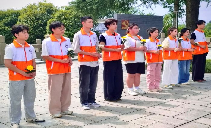 杨闇公烈士陵园里,长满青青柏树的道路蜿蜒向前,路道的曲折恰映出烈士革命征途之艰。实践团成员们一路前行到烈士墓前,在烈士墓前,众人肃立默哀,纷纷献上菊花,缓缓绕墓地一周,表达对先烈的无比敬仰和缅怀之情。