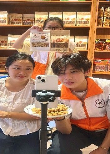 图为实践团助力双江千层麻花非遗传承人杨梨推广技艺、拓展销路,单场直播收获 1.5 万次点赞。真正实现传统技艺与青春力量的双向奔赴!韦用强 供图