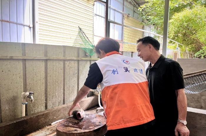 图为实践团成员跟随重庆市级非物质文化遗产太安鱼技艺传承人郑长春体验制作太安鱼过程。赵志璇 供图