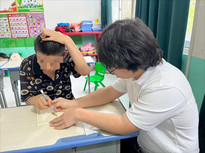 图为南工学子辅导学生写作业。朱佳慧供图