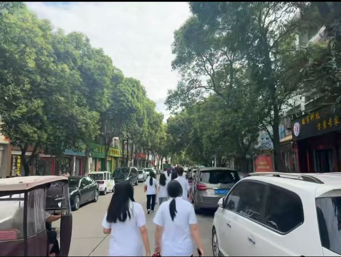 图为南工学子结伴去学校路上。汤淑雯供图