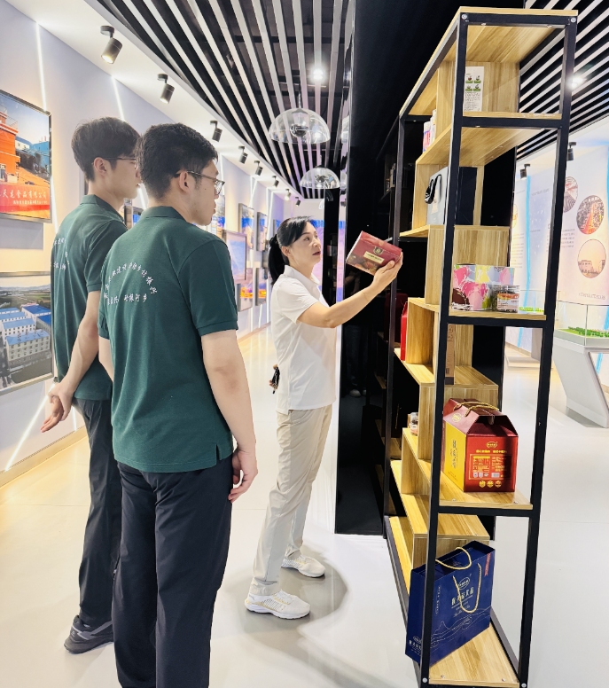 来到电子滚动卷轴前,实践队成员随着展卷节奏,细看关于海林森林资源、特色农产品的介绍。“猴头菇”、“黑木耳”等特色标签旁的注解,让队员们结合专业讨论:“这些优质农产要走出大山、特色木材要精深加工,交通物流的畅通与仓储设施的完善是关键支撑。”转至园区风采区,屏幕上正播放智能菌菇生产线的忙碌场景,展架上陈列着特色农产品的深加工制品。队员们明晰:“从资源到产业的跃升,离不开物流网络的搭建与生产设施的优化,这些正是土木交通专业可以发力的关键环节,也是我们用专业能力为“好资源”蜕变为“好产业”筑牢的支撑。”