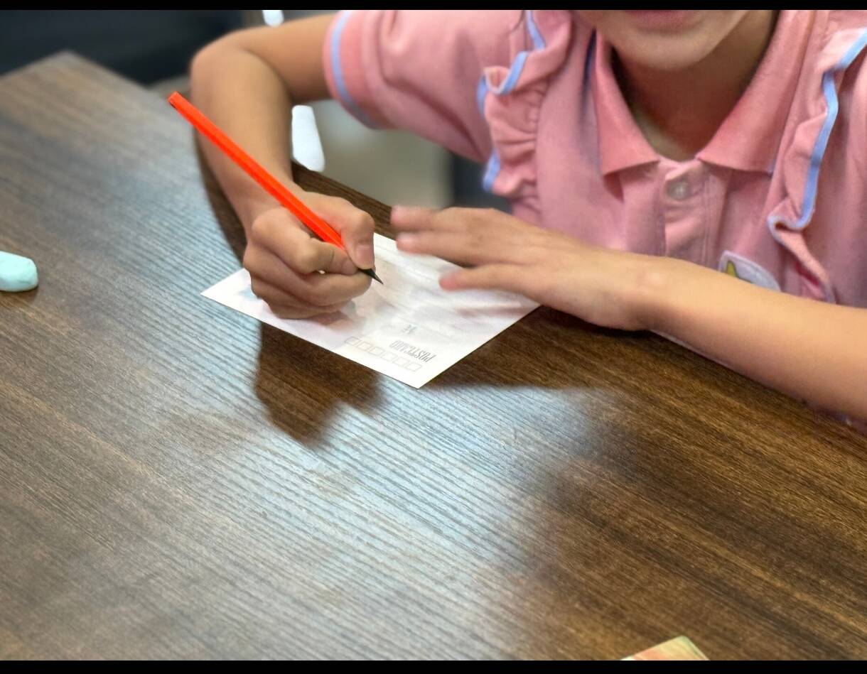 ————图为学生们在书写明信片