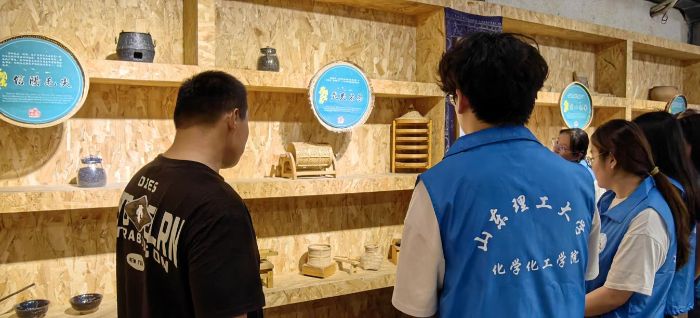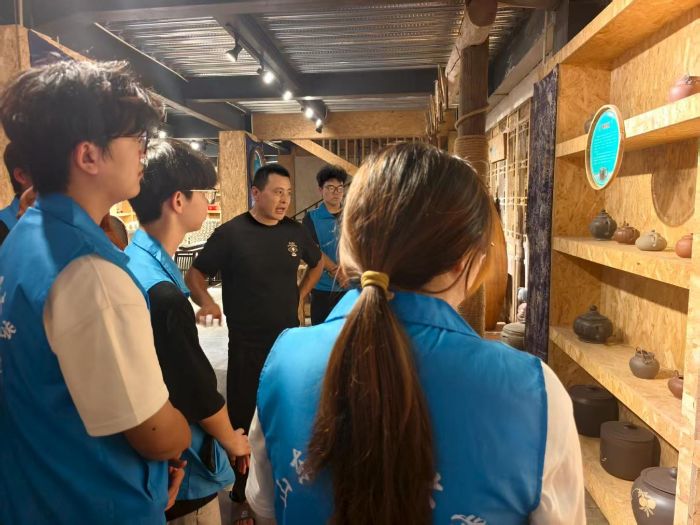 烧水环节的讲究也让实践团成员印象深刻。尹经理介绍,过去茶会煮茶常用木材烧水,认为木柴燃烧的火气能与茶水相融,让茶汤滋味更醇厚,且古人对煮茶、泡茶的水要求极高,有“茶七分水十分,则茶得十分;茶十分水七分,水质不好则茶只得七分”的说法。展墙上的图片展示着不同水源的特点:崂山泉水因富含矿物质被列为上佳之选,至今仍有人专程前往取水;长江中段的江水水质清冽,适合冲泡绿茶;而井水则需选择深层水源,避免地表污染。《红楼梦》中妙玉用梅花露水泡茶的故事更被特意标注,让大家感受到古人对泡茶的极致追求与生活雅趣。