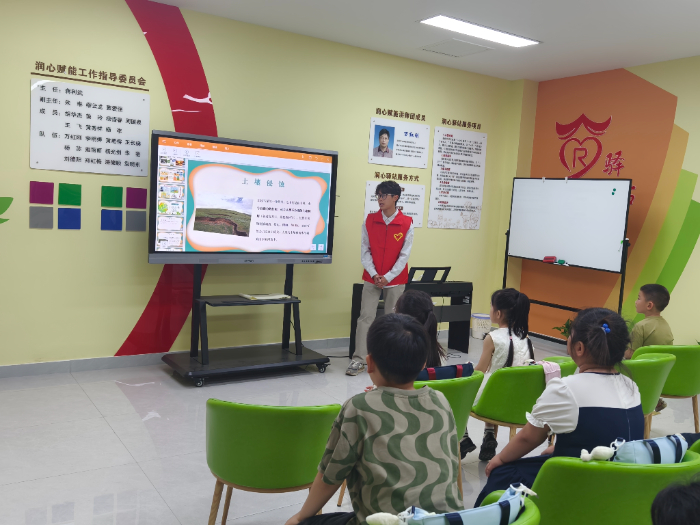 7月15日,小队成员在扬州市宝应县安宜镇锦城社区开展了“荷”你同行,乐享一夏“公益暑托服务”项目的活动启动仪式与开班第一课的授课工作。这堂广受好评的生动课堂,背后是实践小队对当地儿童科普教育的用心筹备。开班第一课上,李厚霖同学以“土壤健康”为主题,一句“土壤里有哪些小伙伴”的趣味提问,瞬间点燃了孩子们的热情,引发热烈讨论。从土壤组成的奥秘到污染防治的方法,孩子们在观察土壤样本时瞪大了好奇的眼睛,在绘制保护海报时倾注了满满的创意——生态保护的种子,就在这些互动体验中悄然在他们心间扎根。整堂课寓教于乐,用鲜活有趣的形式引导同学们走近土壤、认识土壤,更让土壤保护的意识如春雨般浸润童心。