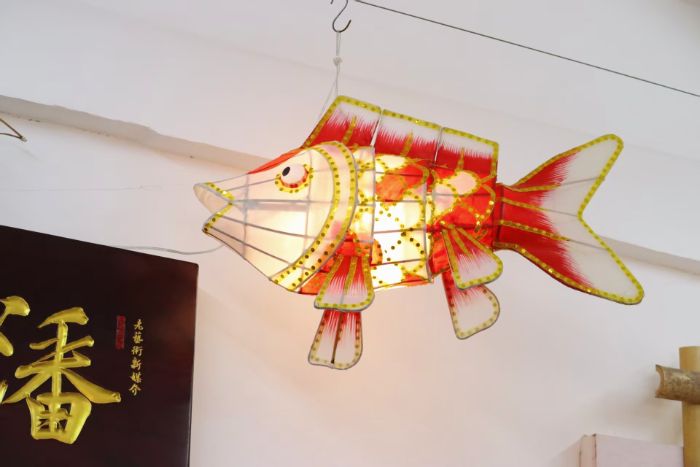 推开工作室大门,一股裹挟着岁月的古朴气息扑面而来,空气中弥漫着浓厚的手工温度。墙上悬挂的成品鱼灯尤为惊艳——红似烈焰、金若朝阳,细密丝线勾勒的鳞片在光影中微微颤动,仿佛下一秒就要摆尾游动。
