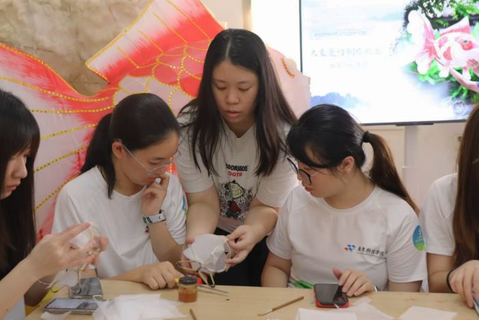 潘老师向我们缓缓讲述大良鱼灯600年兴衰——从清代照亮水乡的盛景,到如今电动鱼灯的创新突破。队员们或凝神聆听、托腮沉思,或低头疾书、举机拍摄,专注的神情中流露着对非遗文化最纯粹的敬畏,让古老的鱼灯历史鲜活地从岁月深处“游”到我们面前。