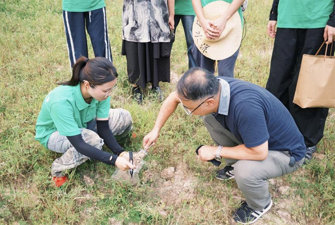 王松良教授指导队员进行土壤采样(毛华磊摄)