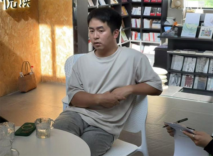 乡野艺校主理人毛华磊阐述“阿土的米”设计理念及过程(福建农林大学“绿脉振兴”实践队摄)