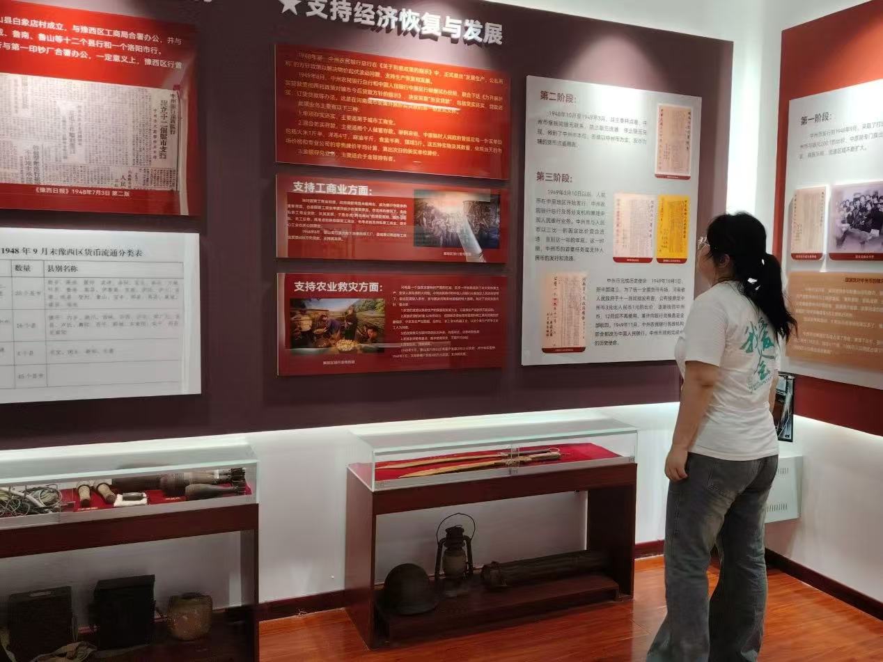 实践团成员进入场馆后,红色金融之旅正式开启。沿展线前行,历史地图、珍贵照片展现了解放军挺进豫西、解放中原的奋战场景,也讲述了中州农民银行成立后,通过发行货币、整顿金融市场打破敌人经济封锁,为巩固新生政权提供经济基础的历程。红色会计在稳定金融秩序中作用关键,先辈们严谨的账目记录为金融政策制定实施提供可靠依据,让实践团成员更深刻认识到红色会计的重要性。