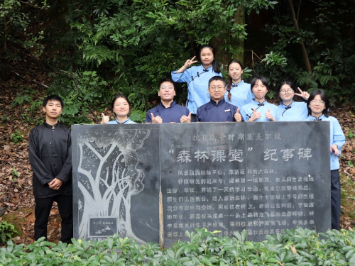 (图为集体在“森林课堂”纪事碑前大合影范孟媛供图)