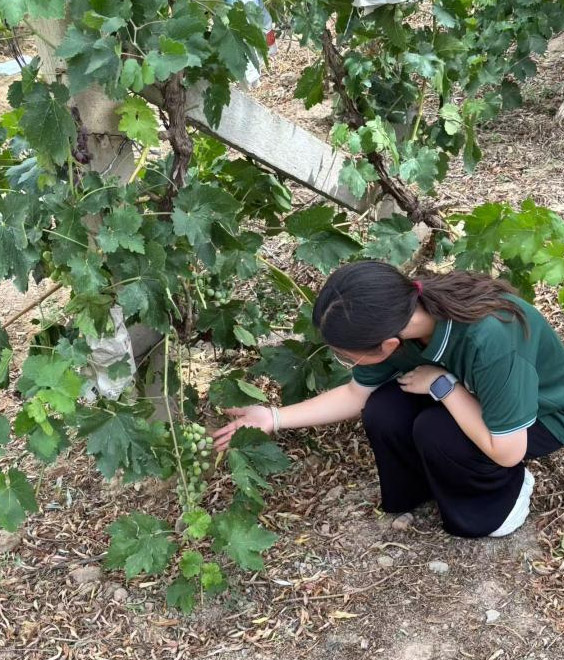 图为实践队队员参观葡萄种植基地 何紫涵供图