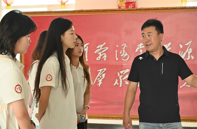 仪式后的座谈会上,村干部深情讲述了2024年党群同心防汛抗洪的故事:“当时水位上涨的速度超出想象,集体鱼池的堤坝瞬间就被冲垮了。我们连夜转移全部村民,党员干部全员上阵,分成小组24小时轮班值守,最大程度守住了村民的米袋子。”朴实的话语道出了基层党组织“人民至上”的使命担当,也让实践团成员深刻体悟到“人心齐,泰山移”的乡村振兴密码。
