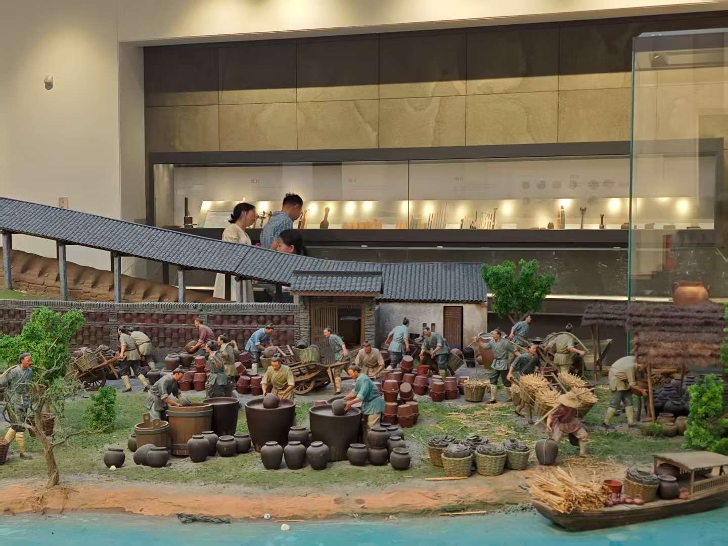 图为实践团成员参观古代制陶场景还原模型,由相关人员进行讲解。中国青年网通讯员许家煜摄
