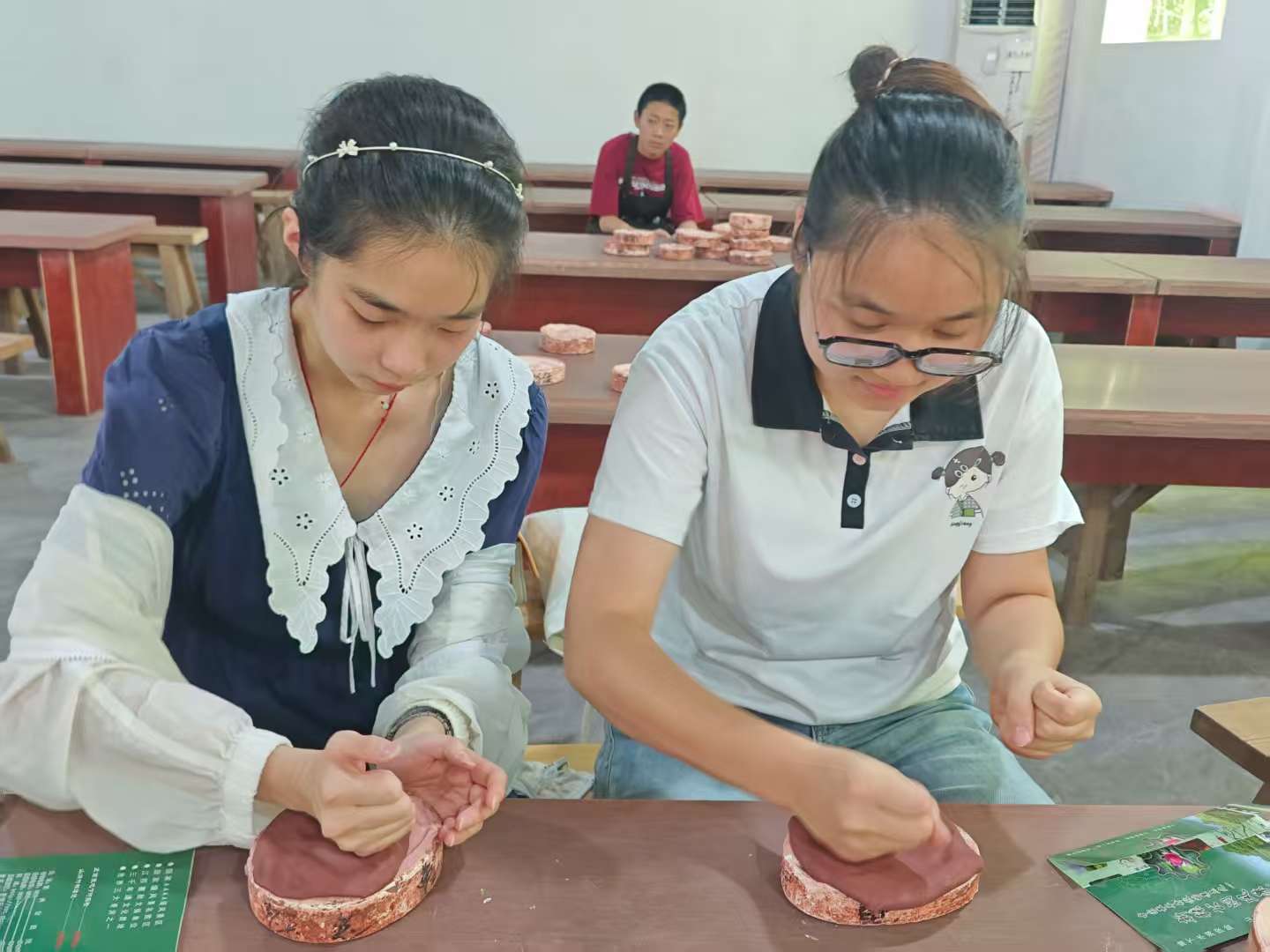 图为实践团成员在张公洞陶管体验传统陶瓷工艺。中国青年网通讯员纪树蓝摄