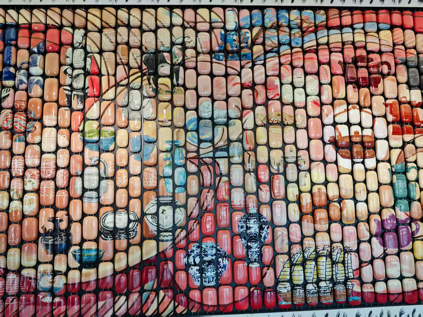 图为实践团成员在队长带领下参观陶二场精美的陶瓷展品。中国青年网通讯员陈智文摄