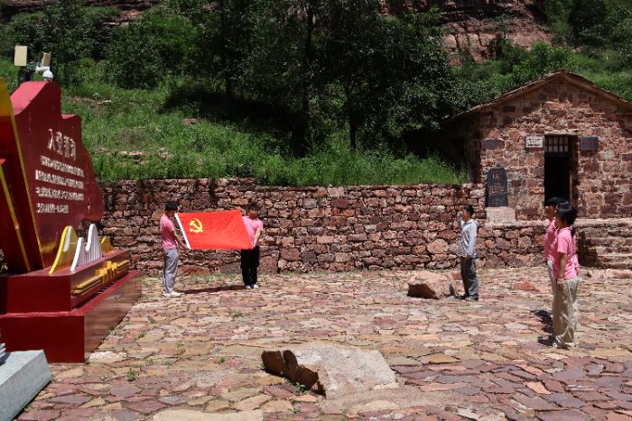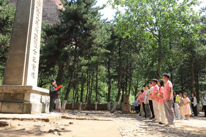 在庄严肃穆的纪念广场,实践团的全体团员面向党旗,举起右拳,庄严宣誓:“我志愿加入中国共产党……”激昂的誓言在山谷间回荡,与革命先辈们曾浴血奋战的这片土地产生了强烈的共鸣。