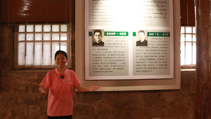 随后,实践团来到兵工厂展览馆。馆内陈列的一件件文物,让大家深切感受到了当年军工生产的艰难。锈迹斑斑的“土锉刀”、简陋的手摇车床,都是当年工人们克服重重困难进行生产的见证。“在那样艰苦的条件下,没有先进的设备,工人们就用日军的钢盔炼铁,拆敌人的铁轨造枪管。”讲解员的话语让成员们深受触动。