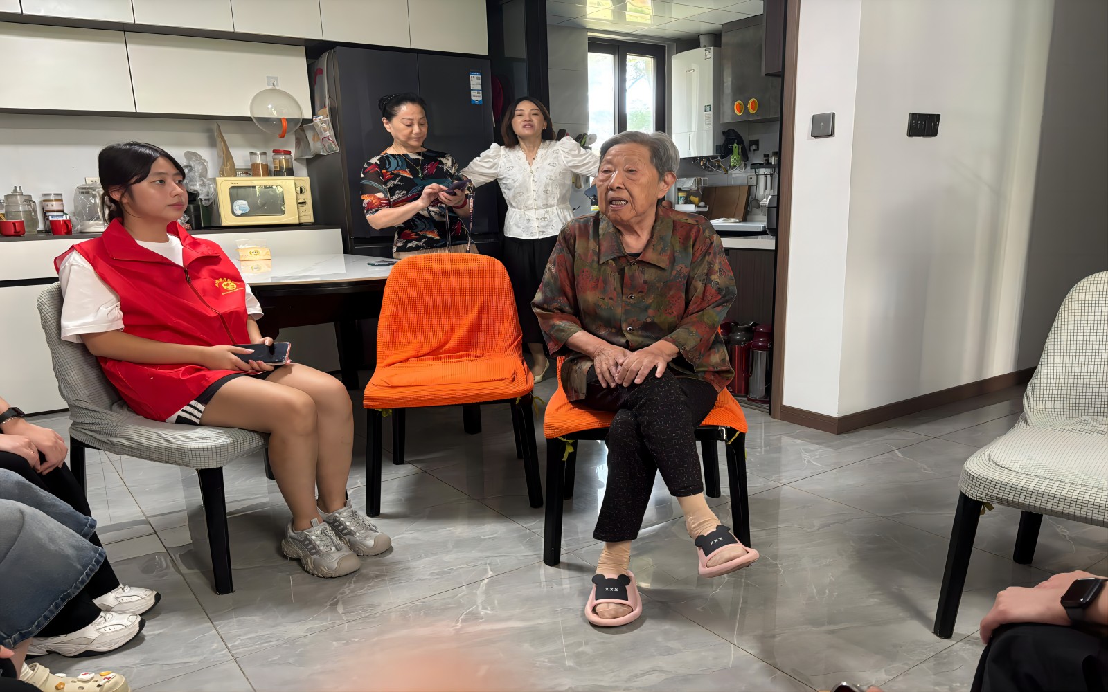 7月3日下午,实践团来到丹霞社区水岸嘉菀物业服务中心,听抗美援朝退伍老兵鞠奶奶讲述烽火岁月。“家里怕危险,死活不让我参军。”老人声音沙哑却有力,“18岁那年,我趁着天黑,跟着两个姐妹偷偷翻出了家门。”入伍后,她被分配到卫生队,每天要清洗沾满脓血的纱布。“前线送下来的纱布都得煮三遍再用,伤员太多,浪费不得。”说到这里,她突然抬起右手比划着,“煮纱布的大铁锅,有这么大。”1950年冬,菊奶奶随部队开赴大兴安岭修筑铁路。当被问及最难忘的事,她沉默了几秒:“在朝鲜战场,山上到处是弹坑,高射炮打下的飞机残骸插在雪地里,像墓碑。”战争结束后,只有小学文化的她开始用树枝在泥地上练字,"茧子磨得握不住筷子",最终从文盲成长为能写工作报告的基层干部。 “现在的年轻人要记住,好日子是拿命换来的,别忘本。”老人的话语让在场实践团成员红了眼眶,有成员偷偷擦拭眼泪,大家纷纷点头,牢记奶奶叮嘱,“如今的幸福生活是前辈们在艰苦岁月中不懈奋斗中得来的,我们要好好珍惜,尤其是我们青年大学生要为当代社会发展付出自己的一份力量。”