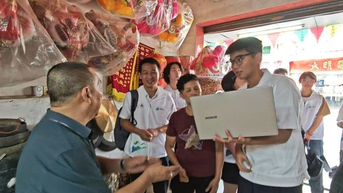 作坊内弥漫着桑皮纸浆的气息,实践队员们正围绕测量数据和模型细节进行交流讨论,声音在骑楼间荡开。原来数字不是冷的,当它接住匠人的指尖温度,代码也能长出温情的棱角。
