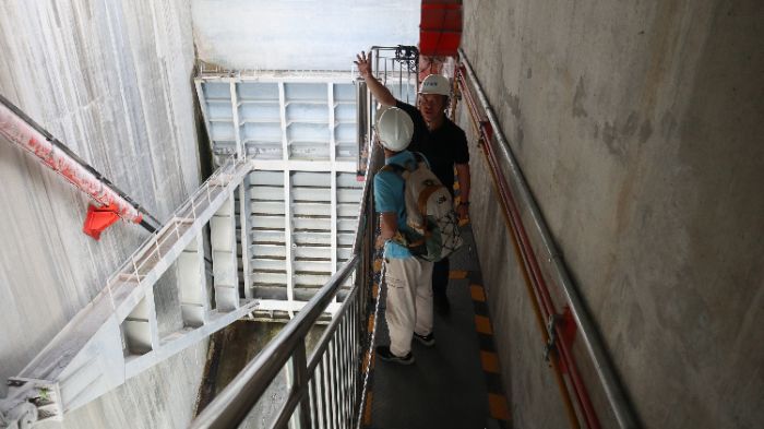 成员观察放水闸门结构及启闭系统 宋天浩摄