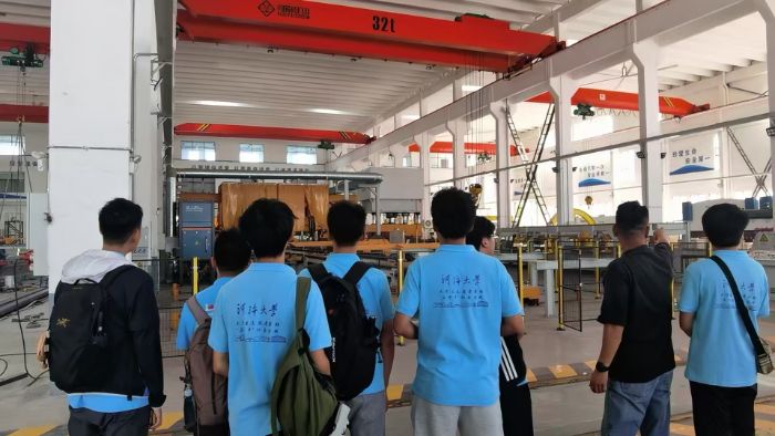 实践团考察宜兴环保科技园。在艾瑞泽环保有限公司,团队了解了其作为核心制造商,以“降污减碳”双效模式深度践行生态理念。实地观察其磁混凝系统(絮凝物95%高效分离)、纳米过滤器(出水悬浮物<5mg/L)、中水回用系统(年节水超50万吨),有效实现污水高效处理与资源化。团队由此提炼命题:“环保装备如何兼顾效能与低碳?”鹏鹞环保通过30项专利构筑的硬核科技矩阵(如全自动焊接机械臂、AI能耗优化)突破技术成本壁垒。此次工业4.0级参访让学子深刻感知“双碳”目标下的智造革命与科技赋能生态治理的硬核力量。