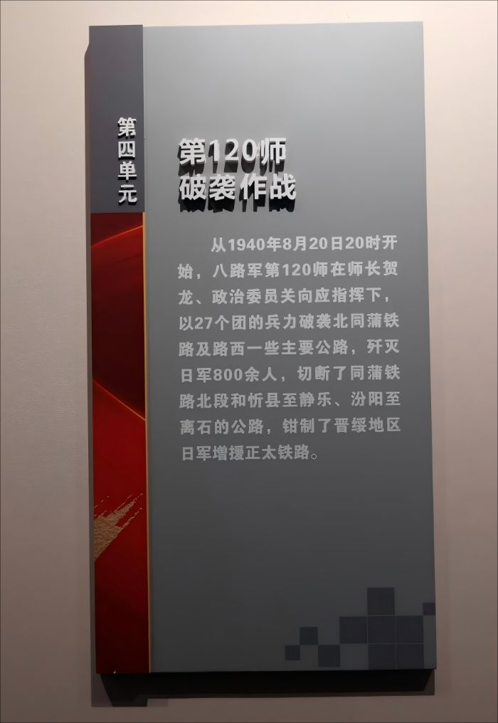 离开纪念碑,团队走进百团大战纪念馆。踏入馆内,陈列的史料与珍贵文物,瞬间将众人带回那段烽火硝烟的岁月。大家聚焦八路军第120师相关展陈,深入了解其破袭作战的英勇壮举。1940年8月20日,第120师在贺龙、关向应同志指挥下,以27个团兵力破袭北同蒲铁路等交通线,歼灭日军800余人,成功切断运输通道,有力钳制日军增援。一张珍贵的老照片中,第120师机枪阵地的战士们潜伏在草丛,眼神坚毅无畏,无声诉说着战斗的激烈;烈士左清臣的事迹展板,记载了1941年他为保护部队运输队,率留守人员与日军激战,毙敌50余人后壮烈牺牲的英勇事迹。这些鲜活的历史,让同学们深刻体会到先辈们用热血与牺牲书写的忠诚与担当。