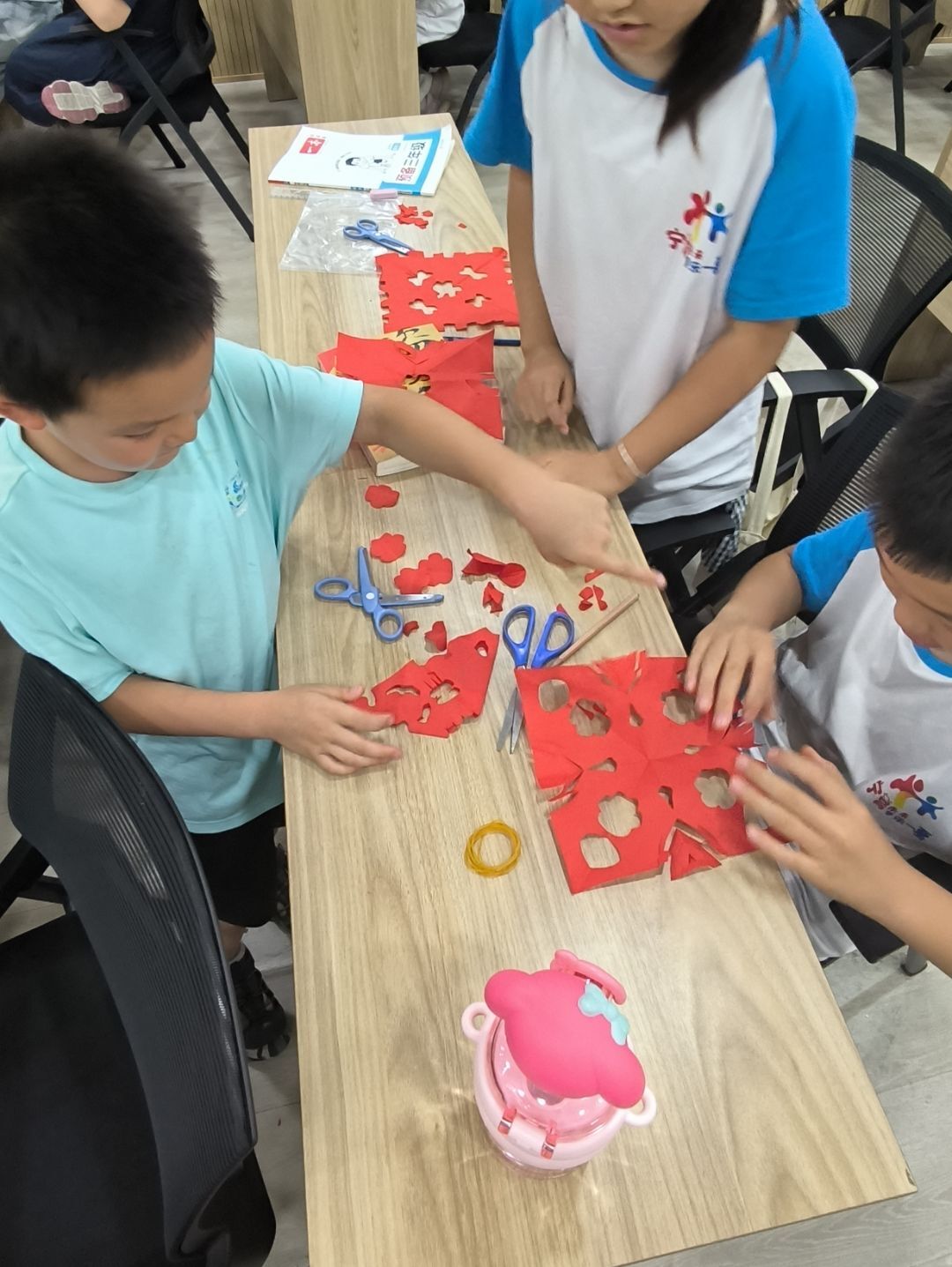 通过这样的互动体验,孩子们不仅学会了剪纸的基本技巧,还激发了他们对传统文化的兴趣。在剪纸的过程中,一步一步的操作让孩子们学会了耐心和细致,通过展示自己的作品,孩子们获得了成就感,增强了自信心。暑托班通过这样的活动,不仅丰富了孩子们的假期生活,还为他们提供了一个了解和传承中国传统文化的平台。
