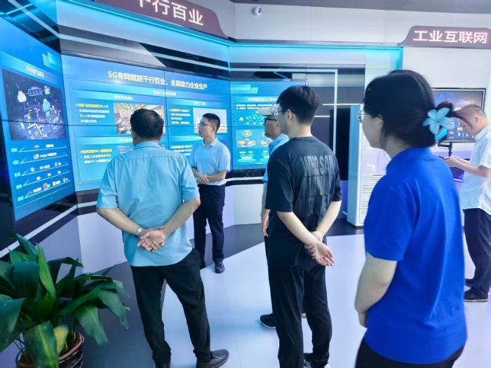 2025年7月28日,在中国移动池州分公司工作人员的热情陪同下,孙院长与钱叶旺教授亲临现场指导,和实践团成员一同开启了这场5G技术探索之旅。活动伊始,负责人向孙院长、钱教授、陈老师和成员们介绍了此体验馆,让他们对此有了初步的认识。随后巨大的展示屏幕上,5G技术在各个领域的应用成果不断滚动播放,从远程医疗的高效救治,到智能工厂的精密生产,再到智慧城市的有序运行,5G正以前所未有的速度改变着人们的生活和工作方式。