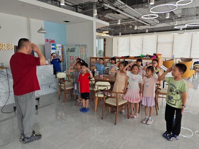 响应“传承红色基因,培育时代新人”的号召,团队不定时开展红色教育专题活动。活动特邀退役军人王老师为孩子们讲述1998年抗洪抢险的亲身经历。王老师以质朴而深情的语言,将孩子们带回那个惊心动魄的夏天。分享后,王老师还手把手地指导孩子们敬标准少先队礼,讲解队礼背后的责任与敬意。孩子们认真模仿,稚嫩的动作里满是崇敬。