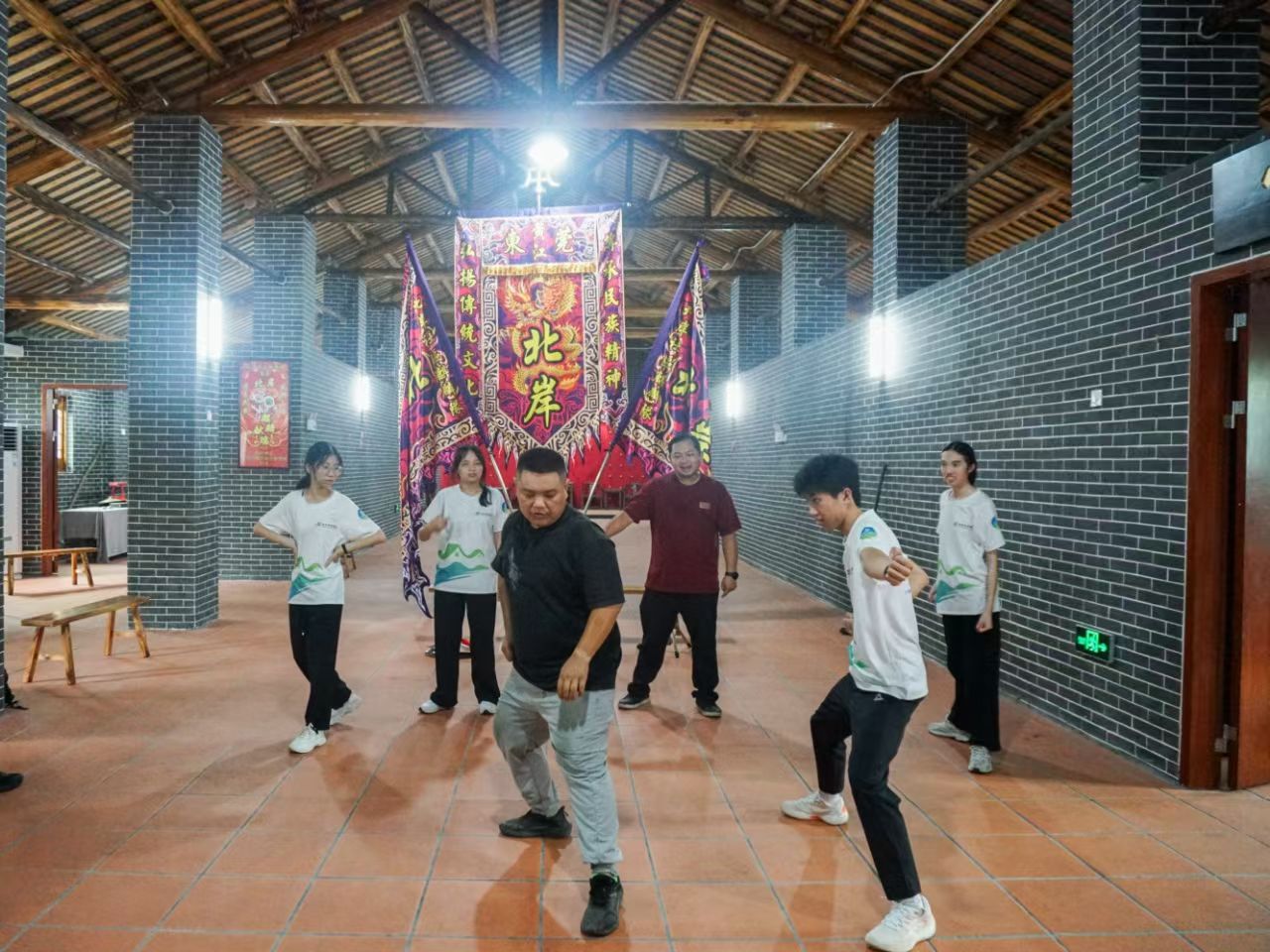 表演结束后,传承人指导队员学习麒麟舞基础动作。从麒麟“探步”“摆头”的神态把控,到步伐与鼓点的配合技巧,再到蕴含其中的传统拳法要领,他们耐心讲解、反复示范。在练习过程中,大家深刻体会到,麒麟舞不仅是舞蹈,更是力量与美感、文化与技艺的完美融合。在老师们的教学下,大家从最初的生涩到逐渐掌握动作精髓,切身体会到麒麟舞刚柔并济的独特韵味。