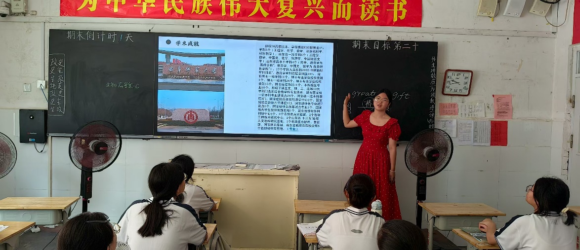 教室中,曲阜师范大学的宣传片徐徐播放,光影交织间,一条时光隧道引领学子们领略曲园魅力。古朴的教学楼与现代化的同声传译实验室、智慧化教室相映成趣,共同绘就一幅承载历史又引领潮流的学术画卷。图书馆里,学子们专注求知的身影,是对“学而不厌”校训的生动诠释;体育场上,青春跃动的身姿,则是“诲人不倦”精神下生命力的最佳展现。这一切,彰显着曲阜师范大学的深厚底蕴与进取风貌。看着高二学子们眼中闪烁的光芒,我们知道,向往曲园的种子已在他们心中悄然种下。