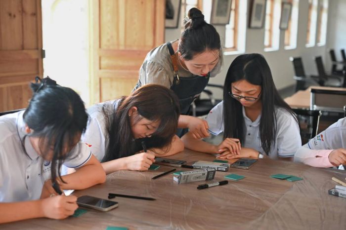 图为团队成员体验延安木刻版画制作。吴俊洋 供图