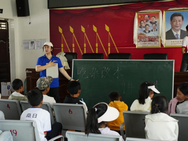 图5 团队成员为学生普及基本卫生知识 苏泉怡摄