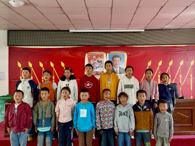 习近平总书记指出,要重视加强学校思想政治教育,把爱国主义精神贯穿各级各类学校教育全过程,把爱我中华的种子埋入每个青少年的心灵深处。在支教的三周时间里,卓吉村分队开展了一系列爱国教育活动。音乐课上,大家齐唱《歌唱祖国》,用歌声表达对祖国的热爱。课后,老师与同学对坐谈心,为孩子们绘就梦想蓝图。