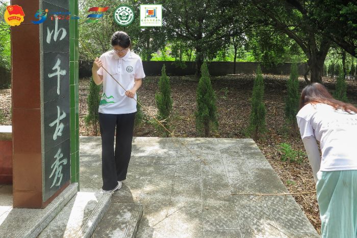 而后,队员们开始细致地打扫思源亭内外。清扫亭周的落叶时,弯腰俯身间,更似在为英雄守护一方洁净。洁净后的思源亭,在阳光下更显庄重,碑上的名字愈发清晰,仿佛在无声诉说着那段不该被遗忘的过往。打扫完毕,众人围站在纪念碑前,静默伫立。