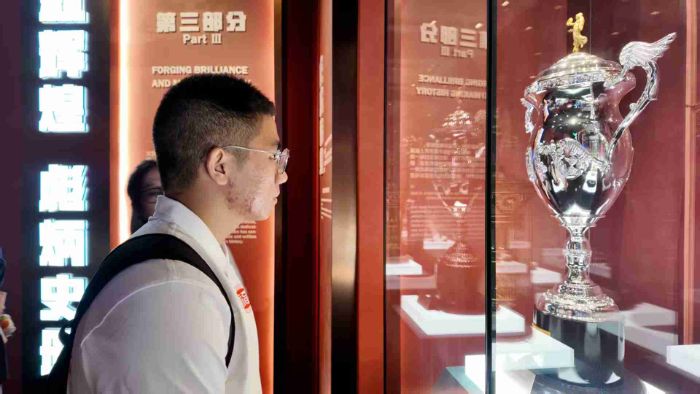 这是中国体育史上第一座且唯一以女排精神命名的信仰坐标——没有鎏金穹顶,不设恢宏展柜,却在斑驳实物中,垒砌起一座民族精神的丰碑。它如同一枚时间的琥珀,将那些汗水浸透的岁月、那些永不言败的呐喊、那些让亿万国人热泪盈眶的瞬间,凝刻在这片孕育冠军的土地上。实践队员们走进中国女排精神展示馆,从一件件女排发展全链条展品中回望中国女排的来时路,深刻体悟中国女排“祖国至上、团结协作、顽强拼搏、永不言败”的伟大精神。