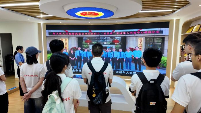 实践队员们走进漳州市龙文区人民检察院,开展了一场以“妇女儿童权益保护”为主题的深度研学活动。在检察官的带领下,队员们参观了未成年人检察工作区、家事调解室等特色功能区。“不是每一个孩子都能拥有幸福的梦想,和其他孩子一样,受伤后对未来充满希望。”检察官动情的话语让队员们深刻感受到未成年人保护工作的重要性。