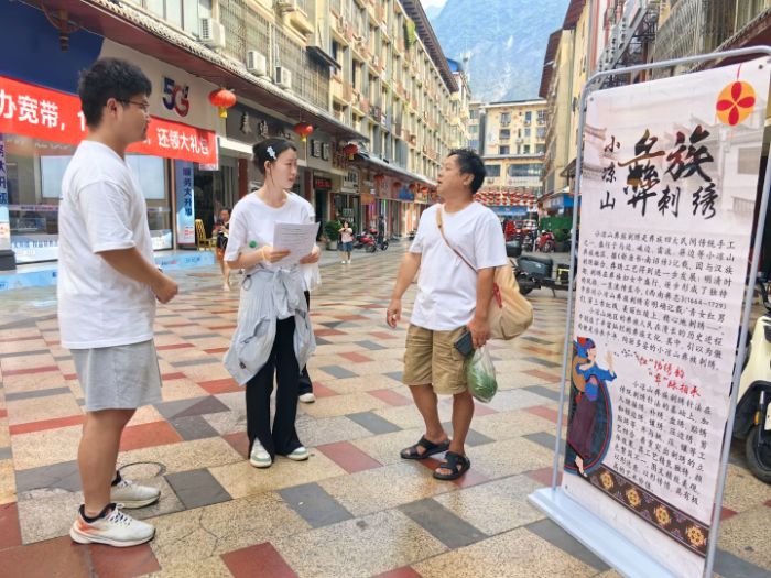 实践活动最后,队员们手持问卷深入县城街头巷尾,与当地绣娘、商户深入交流,梳理出彝绣传承面临的现实挑战。团队针对不同年龄群体采用线上与线下相结合的调研方式,提出针对小凉山彝绣发展现状的青年方案:在品牌建设上深挖自身文化内涵,打造辨识度高的品牌;将传统纹样与现代设计融合,开发更多贴合市场需求的产品等方式助力小凉山彝绣的高效持续发展,后续实践团队将结合专业所长,整理形成调研报告与建议,提出青年保护与传承非遗文化的可行性方案,助力小凉山彝绣实现“传统技艺保根脉、创新设计助力弘扬”的发展模式。