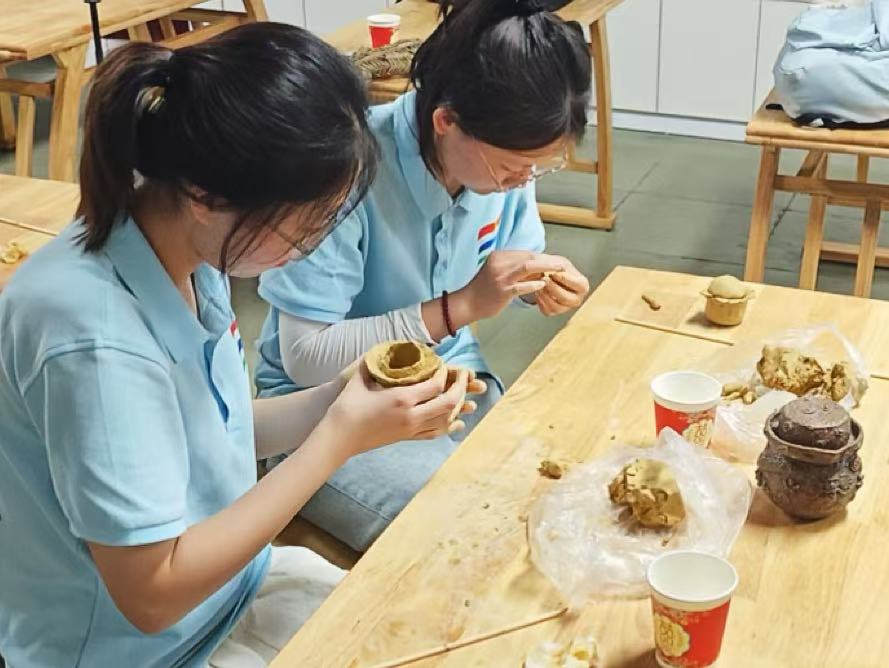 习近平总书记2022年7月13日在新疆考察时说:“要加强非物质文化遗产保护传承,把各民族优秀传统文化发扬光大。”2025年7月18日,重庆外语外事学院英语学院“万”“项”更新齐振兴实践团走进巴人文创产业园,开启一场与非遗文化、泥塑艺术的深度对话。