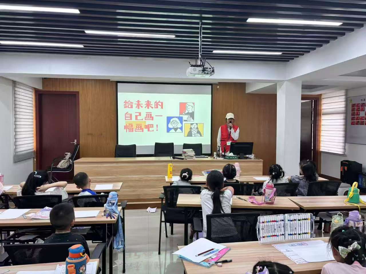 在志愿者的指导下,孩子们用画笔描绘20年后的自己:有的画着身穿白大褂的医生,有的描绘在太空站工作的宇航员,还有的想象自己成为艺术家的模样。每幅作品都配有简短的未来规划说明,展现了孩子们对美好未来的憧憬,同时,稚嫩的字迹里也藏着对成长路径的懵懂规划。