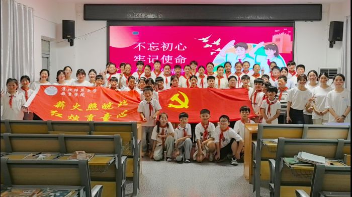 7月14日,淮北师范大学教育学院“薪火照皖北,红烛育童心”暑期“三下乡”社会实践团队,深入安徽省淮北市双堆集明德小学,开展了一场别开生面的红色文化传播活动。团队成员充分发挥专业所长,通过精心设计的心理团辅课与音乐课,寓教于乐,引导小学生们在游戏互动与歌声中感悟淮海战役的“小推车”精神,并与青年教师深入交流红色文化教育心得。