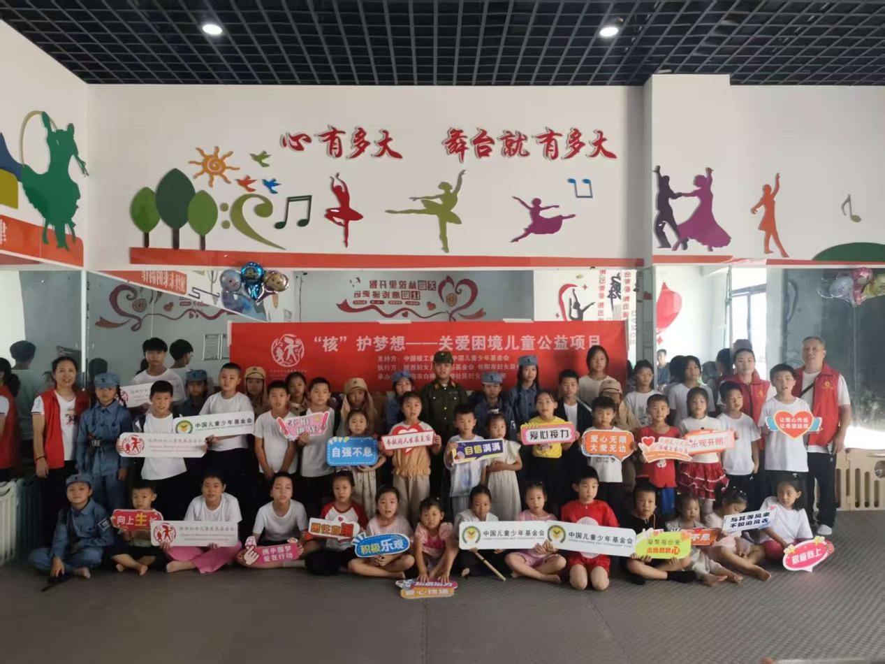 “核”护梦想——关爱儿童主题活动迎第一个环节。校志愿者与当地志愿者一同带领孩子们唱起了《歌唱二小放牛郎》,稚嫩的歌声在活动室里回荡,有人边唱边轻轻打着节拍,有人望着墙上“勇敢”“守护”的标语,眼神格外认真。
