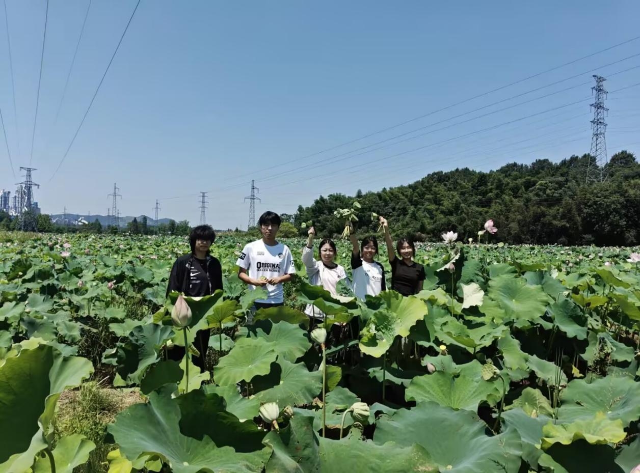 7月2日,实践团走入了池州市牛头镇关山村的荷花种植基地。当地的村民向我们介绍莲子的生长过程,讲述到为采到新鲜的莲子,每天早上四五点就要去采莲子。面对大片荷花,成员们观察其生长态势,了解荷花种植在生态旅游、莲产品开发等方面的价值,并亲自去实践采莲子的乐趣和其中的辛苦。新鲜的莲子吃进嘴里面甜甜的,脆脆的。