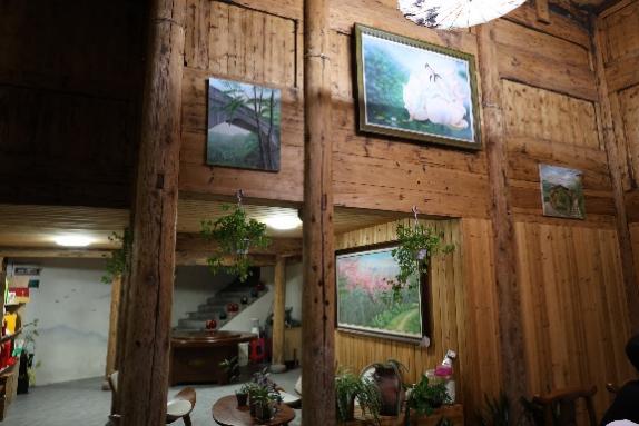 在当地政府的支持下,废弃的古宅得以修缮焕新。返乡后,吴祥芳与团队因地制宜,打造了独具匠心的“画苑民宿”——“兰庭拾光”:红鲤悠游池中,绿植摇曳风里,就地取材的旧木材、溪边石也被油彩赋予新生,装点角落。她牵头创建的下党画苑,将油画艺术与古宅风韵、自然生态有机融合,将艺术扎根乡土;在这里,古村落的肌理与艺术创作的活力交融,成为下党乡“看得见山水,记得住乡愁”的生动注脚。