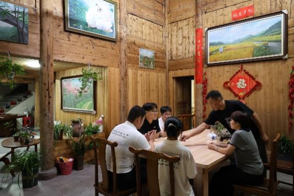 吴祥芳与下党的故事相遇在2020年5月。彼时,吴祥芳到下党采风创作,当地“青山如黛、碧水长流”的生态深深吸引了她,恰逢下党乡党委大力实施人才引进政策助力乡村振兴。“领导很尊重人才,从各方面支持人才返乡创业,下党民风也很淳朴热情,我很喜欢这里的氛围。”吴祥芳说。在双重感召下,她毅然携团队返乡,成为下党“新农人”,决心以“绘画+民宿”的文旅融合新模式,为下党的乡村振兴注入新活力。