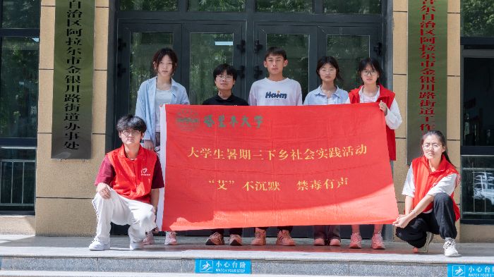 7月4日,塔里木大学化学化工学院暑期三下乡“‘艾’不沉默,禁毒有声”教育宣讲调研团深入第一师阿拉尔市学苑社区,开展禁毒防艾主题宣