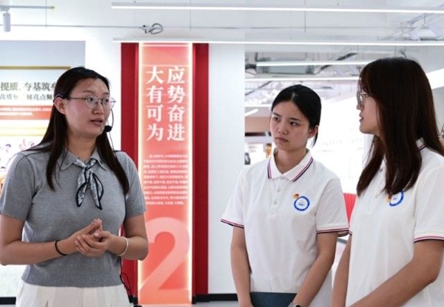 在见证了“党组织+专业合作社+强村共富公司”模式的生动实践后,实践团来到大场镇党建综合阵地,在大场镇团委书记管义群带领下,实践团通过丰富的图文史料和深入浅出的讲解,系统了解了大场镇“三社一司”集成改革的创新实践。从地理风貌到人文底蕴,从资源盘活到多元发展,实践团认真记录、深入思考,围绕“前河小院”项目的运营机制、可持续性以及“三社一司”改革的具体成效与挑战展开讨论,在思想碰撞中深化了对党建引领乡村振兴的认识。
